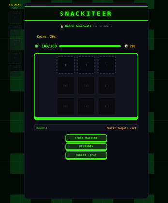 Snackiteer is a vending machine simulation roguelike game made for gamedev.js '26 machine game jam.